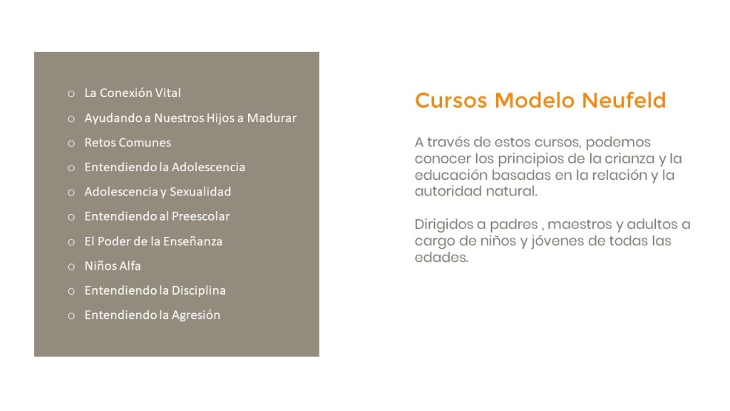 Este modelo nos ofrece, a través de diversos cursos, el regalo de poner en palabras y acciones sencillas conceptos y procesos madurativos neurológicos profundos y complejos. Nos permite ejercer una disciplina basada en la relación y enfocada en promover los procesos madurativos y no a entorpecerlos. Lo valioso de este modelo es que no nos da “las soluciones”, sino que las saca de dentro de nosotros y nos acompaña en el resurgimiento de nuestra intuición natural.